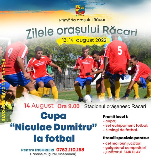 13-14 August! Cupa Nicolae Dumitru la Fotbal, de Zilele Oraศului Rฤcari!