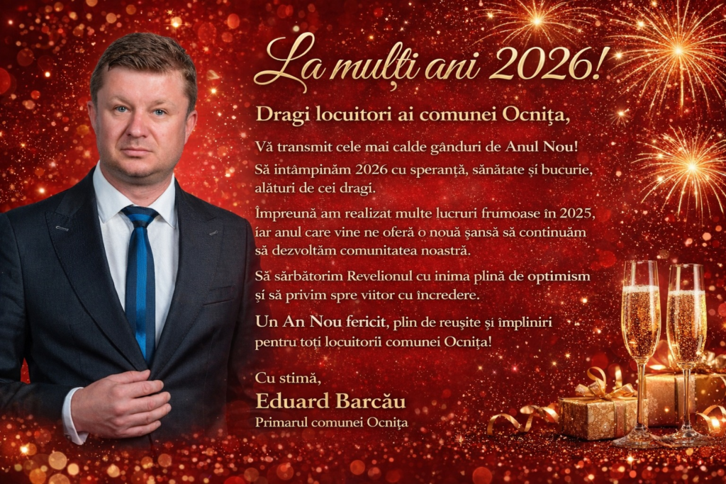Articolul anterior Mesaj pentru comunitatea din Voinești din partea primarului Gabriel Dănuț Sandu: Anul Nou începe cu speranță și unitate! Articolul următor Mesaj de Anul Nou 2026 din partea primarului Iulian Buibăr, adresat tuturor locuitorilor comunei Răscăeți