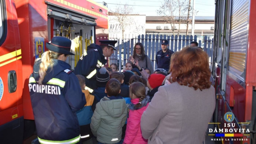 Colinde, zâmbete și lecții de siguranță: copiii au adus spiritul sărbătorilor în rândul pompierilor dâmbovițeni!