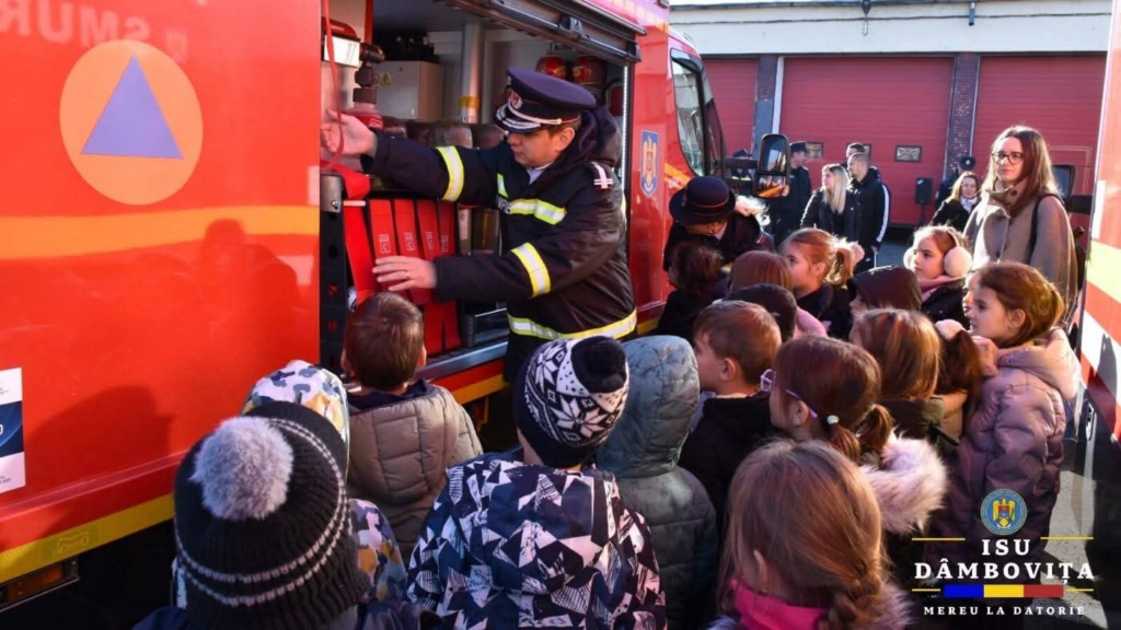 Astăzi, 16 decembrie 2025, elevii Colegiului Național „Constantin Cantacuzino” din Târgoviște, aflați în cadrul programului „Școala altfel”, au avut ocazia să viziteze sediul Detașamentului de Pompieri Târgoviște. Aceștia au descoperit autospecialele de intervenție, echipamentele și tehnica folosită în misiunile de salvare, fiind fascinați de responsabilitatea și complexitatea activității desfășurate de pompieri zi de zi.
