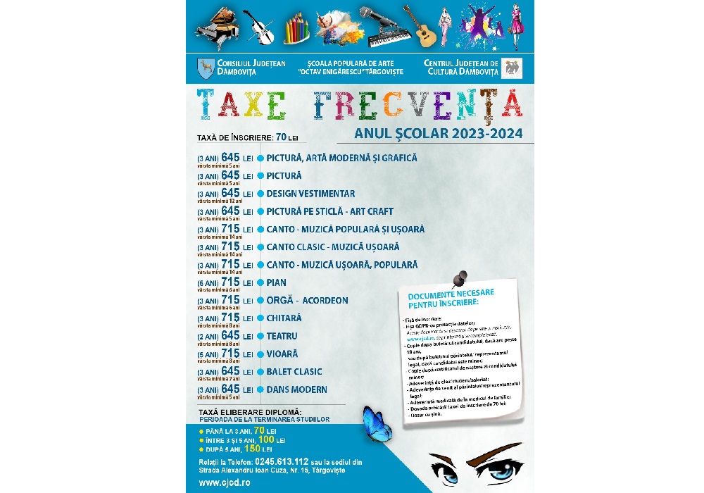 În anul şcolar 2023-2024, Centrul Judeţean de Cultură Dâmboviţa, prin Şcoala