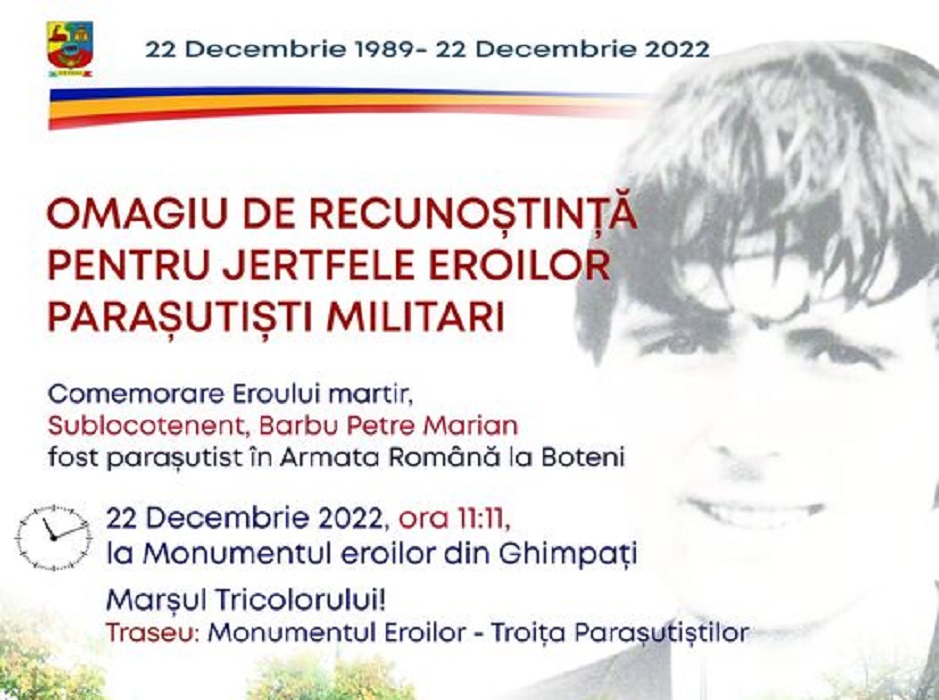 Comemorare Eroului martir, Sublocotenent, Barbu Petre Marian fost parașutist în Armata Română la Boteni
