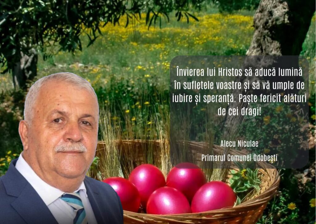 Mesajul primarului comunei Odobeşti, cu ocazia Sărbătorilor Pascale: Share on TwitterTweet Share on Pinterest Share Share on LinkedIn Share Share on Digg Share
