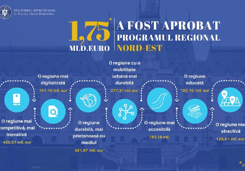 Ministerul Investițiilor și Proiectelor Europene a primit aprobarea oficială din partea Comisiei Europene pentru două noi Programe Regionale aferente perioadei de programare 2021–2027, Programul Regional Sud-Est și Programul Regional Nord-Est.Sfarsitul primului paragraf