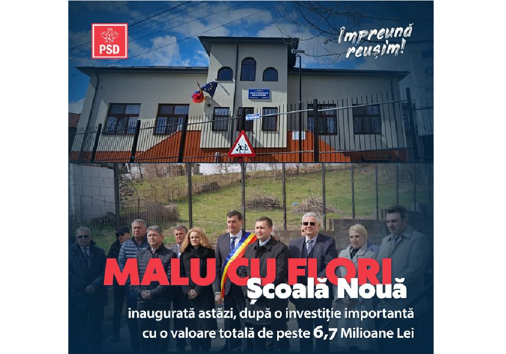 Momente emoționante trăite astăzi, la #MaluCuFlori, cu ocazia inaugurării unui obiectiv important pentru comunitate – Școală Nouă construită și dotată prin intermediul unui proiect finanțat din fonduri europene!